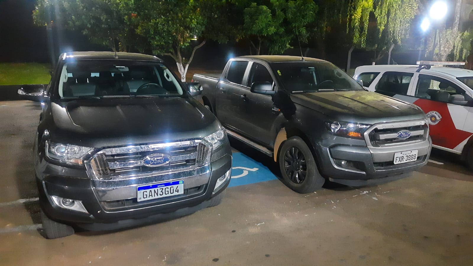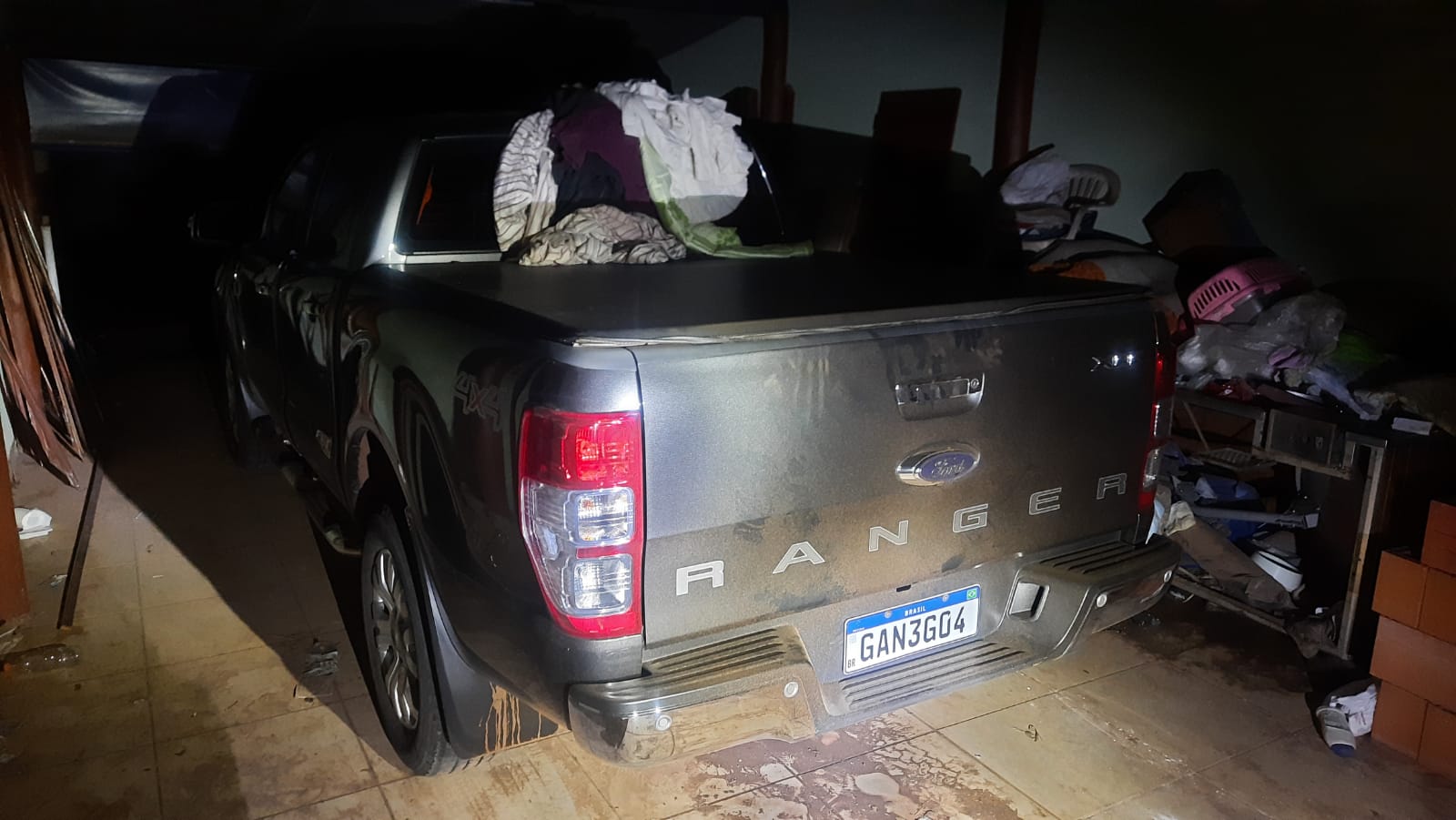 Questionado, L.G.W. confessou que estariam ali para pegar o veículo produto de roubo. O detido trazia consigo um par de placas OIZ-4J64 que seria usado em substituição aos originais. Ainda confessou estar guardando em sua residência outra caminhonete produto de roubo do mesmo dia e vítima da anterior. Imediatamente foi deslocado para o local indicado e logrado êxito em localizar a segunda caminhonete já ostentando novo emplacamento GAN-3G04.