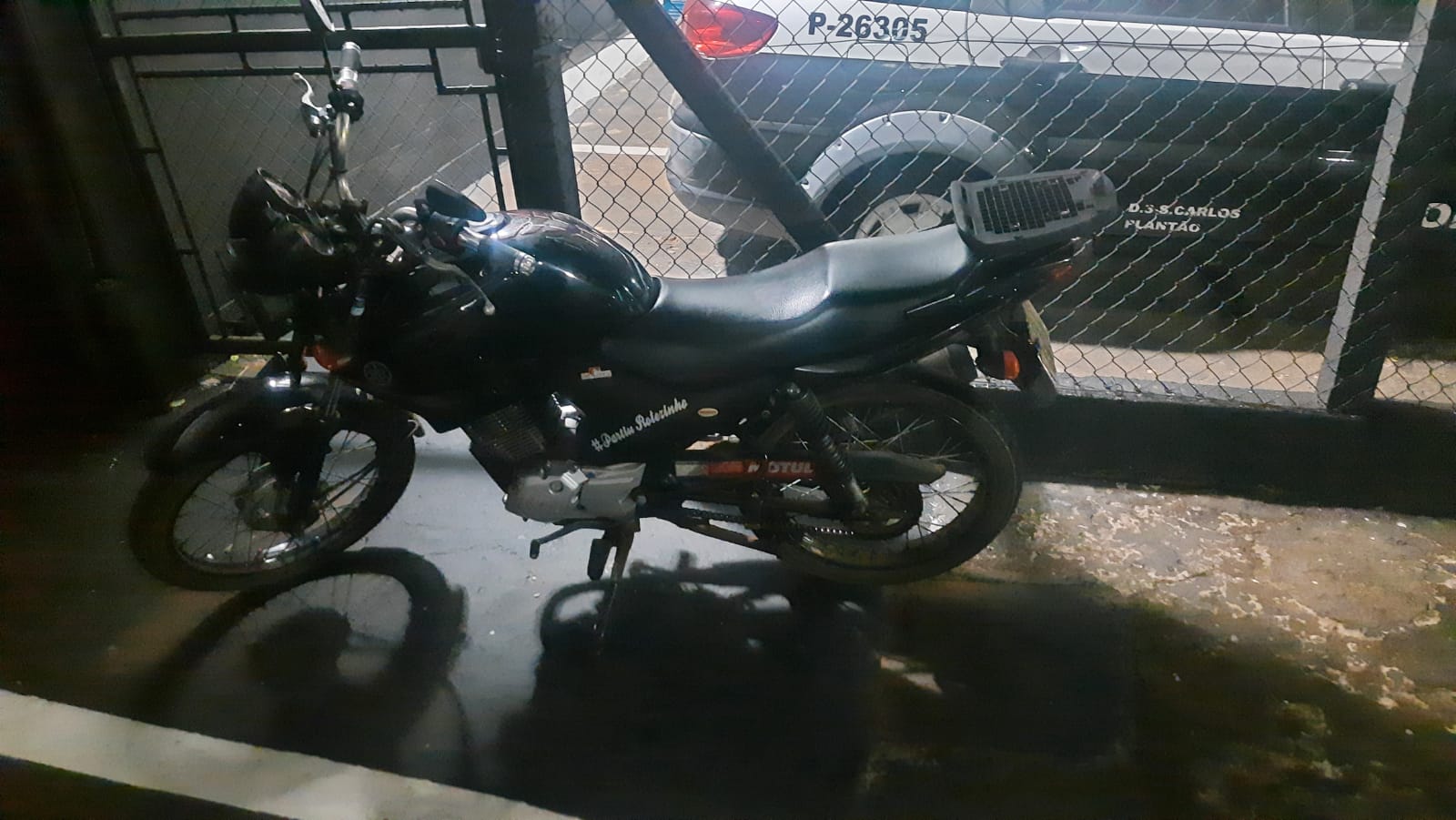 Durante os trabalhos da pericia, uma motocicleta ocupada por 2 individuos fez a aproximação sendo que ao notar a presença policial, abandonaram a motocicleta empreendendo fuga a pé entre a mata sendo que um deles foi acompanhado pelas equipes e detido.