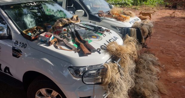 Em 30 de janeiro de 2024, equipe da Polícia Militar Ambiental de São Carlos-SP, durante cumprimento de mandado de busca e apreensão que versa sobre caça ilegal e condutas equiparadas, esta equipe da Polícia Militar Ambiental se deslocou até a área rural do município de Ribeirão Bonito/SP, na Fazenda Ipê, para atendimento da demanda. Pelo local durante a vistoria foram localizados e apreendidos; 01 espingarda calibre. 32 – sem marca aparente, 01 espingarda de ar comprimido adulterada para arma de fogo – sem marca aparente, 73 munições deflagradas de calibres diversos, 09 munições intactas de calibres diversos, 08 potes contendo chumbo, 03 potes contendo pólvora, 02 potes contendo espoletas, 04 canhãozinhos aptos para uso, 02 baleiros, 01 alçapão, 01 batedeira, 02 redes de caça, 01 espinhel, 30 redes de nylon totalizando 241,8 metros, 04 tarrafas e 01 couro de cobra. Diante dos fatos foi dado voz de prisão ao indiciado por posse ilegal de arma de fogo, sendo ele e os objetos foram conduzidos a Delegacia de Policia de Ribeirão Bonito, onde o Delegado Adriano Callsen Alexandrino ratificou a voz de prisão, bem como efetuou a apreensão dos objetos, ficando o indiciado permaneceu à disposição da Justiça.