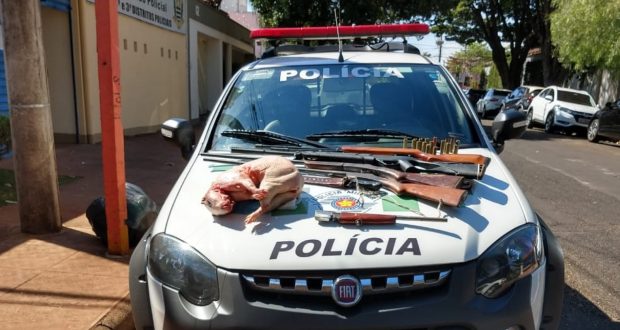A Polícia Ambiental durante patrulhamento ambiental pela área rural do município de Araraquara no ultimo sábado (18), apreendeu varias armas e uma armadilha para caça próximo ao córrego do Chibarro.