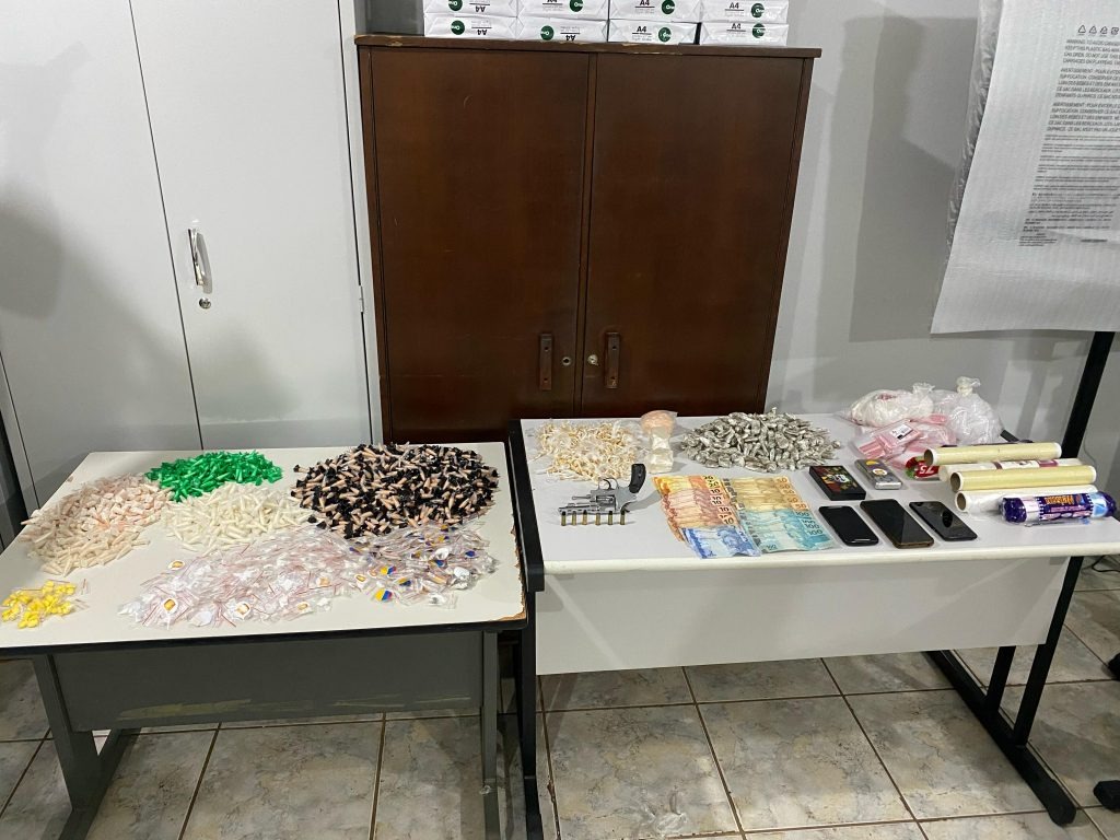 Também foram encontrados R$ 826 em dinheiro, duas balanças de precisão, três celulares, rolos de plástico filme e milhares de embalagens utilizadas para fracionamento das drogas.