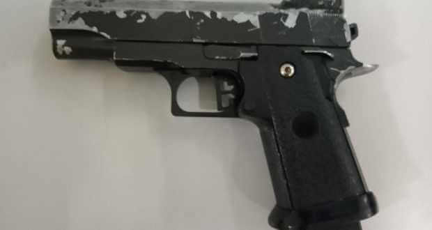 A ocorrência foi apresentada ao Plantão Policial. O simulacro de arma de fogo foi apreendido.