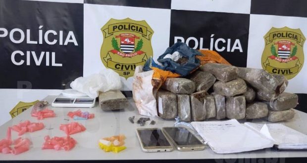 Uma mulher que estava no interior da casa foi detida. No quarto, foi localizado um ´´tijolo´´ de maconha e vários pinos plásticos que seriam preenchidos com cocaína.