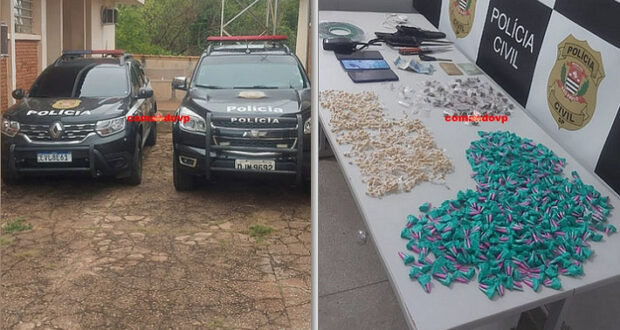 De acordo com informações,  a Polícia Civil em poder de mandado de busca e apreensão, pediu apoio para as equipes de São Carlos e a operação  foi executada.  Três imóveis localizados no bairro Jardim Heliana foram alvos do mandados. Em um foram  localizados  834 pinos de cocaína; 778 pedras de crack; 08 invólucros contendo haxixe; 71 invólucros de  maconha; quantia em dinheiro; material de embalagem; telefones celulares; um rádio de telecomunicação e faca.