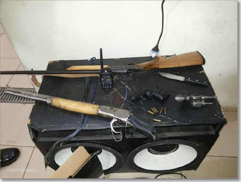 Os policiais então resolveram conversar melhor com os averiguados e eles acabaram confessando o roubo e informando onde estavam os pertences roubados. A PM se deslocou até a rua Dezoito do bairro Cidade Aracy, onde localizou o carro roubado na garagem e os outros objetos das vítimas. Foram localizadas também armas de fogo. Alexandre Carlos Delaporte Barborato,de 25 anos, natural de Araraquara, o qual estava na residência também foi detido.
