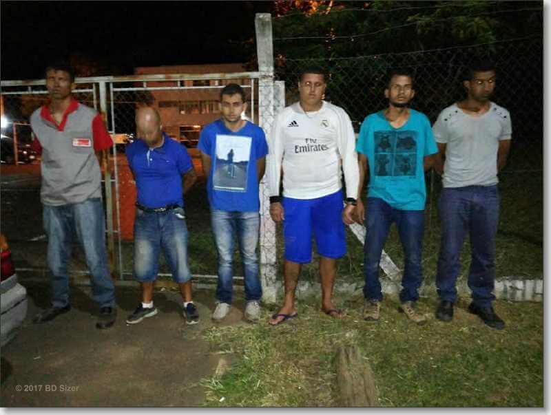 Então a PM encaminhou ao Plantão Policial de São Carlos, Alexandre e seus comparsas identificados como Cesar Paulo Anastácio, de 48 anos, natural de Tabatinga -SP, morador na Avenida Madre Cabrine, Monte Carlo, São Carlos, Gabriel Henrique Costa, 22, morador na rua Isaltino de Moraes, bairro Cruzado II, Ibaté, Valdemi Pessoa da Silva, 31, natural de Gandu-BA, morador na rua Antônio Jorge, Cruzado Ibaté, Kener Alves de Souza, 27, natural de Turmalina-MG, morador na rua Francini, Jd. Planalto Ibaté e Vanilton Gonçalves Silva, 23, natural da cidade de Camacari BA e morador na rua Antônio Jorge, Cruzado Ibaté. Todos foram apresentados para a delegada Dra. Denise Gobbe Szakal e esta autuou o bando em flagrante por roubo, associação criminosa e porte ilegal de arma de fogo e o recolheu ao Centro de Triagem de São Carlos. Todos os produtos roubados e recuperados e a quantia de R$ 404,00 foram devolvidos para as vítimas.