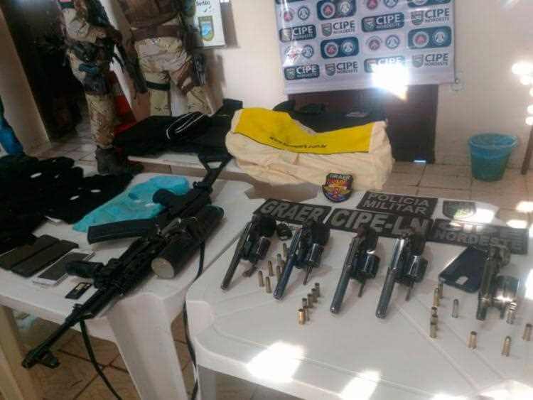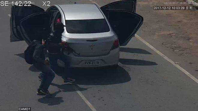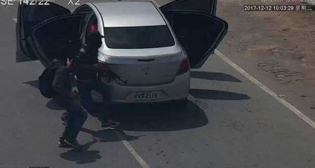 Quando os policiais chegaram ao local, havia homens armados em um veículo modelo prisma, houve troca de tiros, em seguida os suspeitos fugiram.