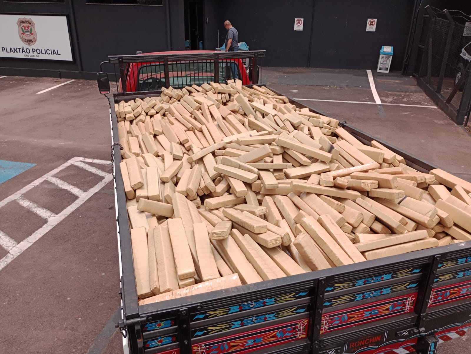 De acordo com boletim de ocorrência, o sargento Camargo e cabo Gonçalves, policiais rodoviários estavam realizando fiscalização no km 233+600 metros da SP-310, pista sul, quando tentaram abordar uma caminhonete Ranger da cor cinza, ocupada por um indivíduo. O condutor empreendeu fuga em alta velocidade, no posto Castelo adentrou ao estacionamento e colidiu na traseira de um caminhão, placas de Catanduva, o qual estava devidamente estacionado e seu motorista dormindo no interior. O suspeito desceu da caminhonete e fugiu para o meio do mato. Dentro da caminhonete foram localizados 1614 tijolos de maconha, um celular, um par de placas de veículo, uma pistola semiautomática, marca Taurus, calibre 9mm, com 3 carregadores e dois auxiliares de carregadores e um rádio HT. A caminhonete havia sido roubada em Brasília-DF. A Polícia Civil foi comunicada do fato e acionou a Polícia Científica. A ocorrência foi apresentada na Central de Polícia Judiciária de São Carlos, as drogas e os objetos foram apreendidos e a caminhonete foi recolhida ao pátio. Foi feito contato com o dono da caminhonete e ele confirmou o roubo. A DISE acompanhou a ocorrência e deverá investigar o fato.