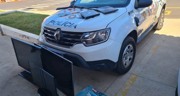 No caminho, em um carreador de cana, a viatura da PM se deparou com a saveiro e iniciou um acompanhamento do veículo e deu várias ordens de parada. A vítima então parou o veículo e o criminoso desceu, tentando empreender fuga, porém foi contido pela equipe e algemado. Os objetos do sítio, sendo TVs, notebooks, ferramentas e várias joias, estavam na caçamba do veículo. Dentro do carro foi encontrada a espingarda utilizada pelo elemento e em seu bolso estava o dinheiro das vítimas.
