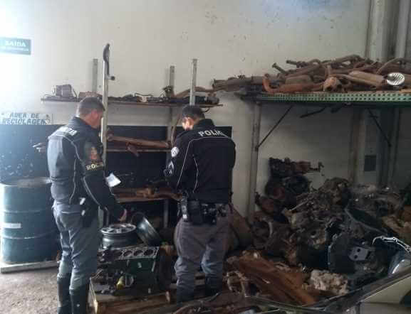 Os policiais militares, guardas municipais e os fiscais Rodolfo Tiberio Penela e Lucas Ferrarini realizaram vistorias em dois estabelecimentos que haviam denúncias de receptação de peças de veículos e motos furtadas.