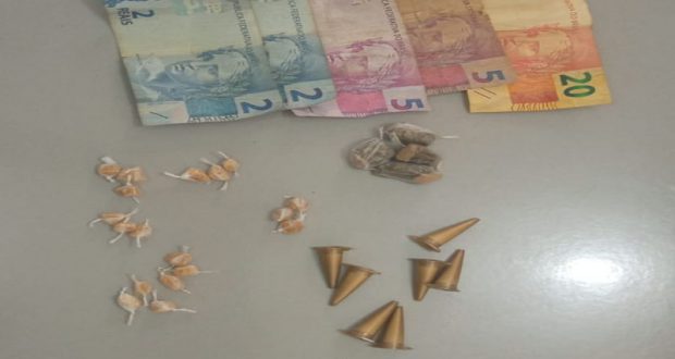 Segundo informações, o Centro de Operações da Polícia Militar recebeu denúncia de tráfico de drogas e uma viatura foi para o local. Um suspeito foi abordado, mas com ele nada de ilícito foi encontrado. Maconha, cocaína, crack e dinheiro foram localizados nas proximidades. A ocorrência foi apresentada na Delegacia da Polícia Civil. O averiguado foi liberado e os objetos apreendidos.