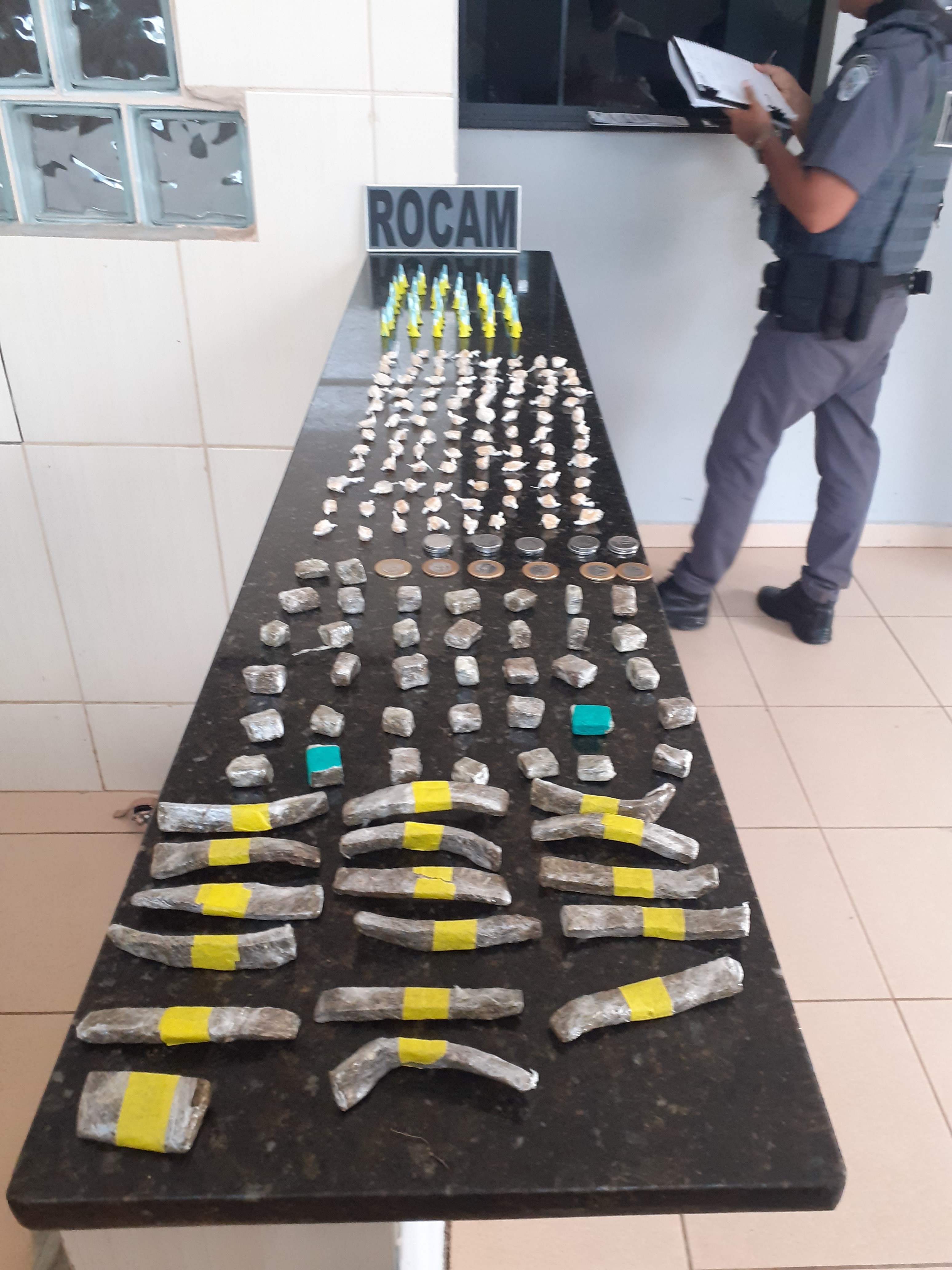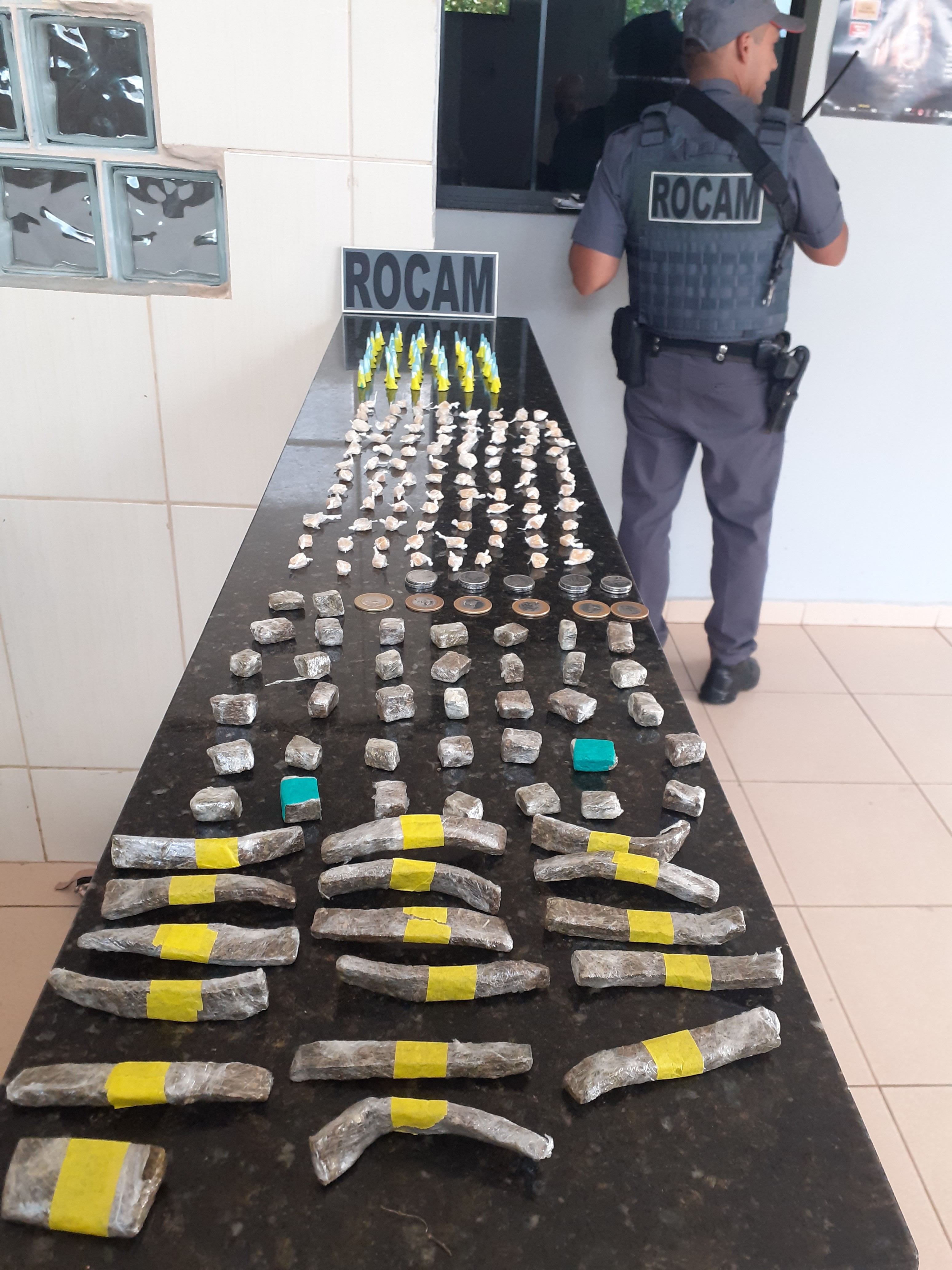 Segundo informações, uma equipe da PM estava em patrulhamento quando avistou R.A.G, de 46 anos. O sujeito teria jogado uma sacola que carregava para uma casa e corrido. O mesmo foi abordado e dentro da sacola foram localizados 51 pinos de cocaína, 100 pedras de crack, 54 porções de maconha e R$ 11,00. O detido foi encaminhado ao Plantão Policial de São Carlos, autuado em flagrante pelo delegado, Dr. Gilberto de Aquino e recolhido ao Centro de Triagem. Ainda de acordo com a PM, o indivíduo tem passagem por tráfico de drogas, furto e receptação.