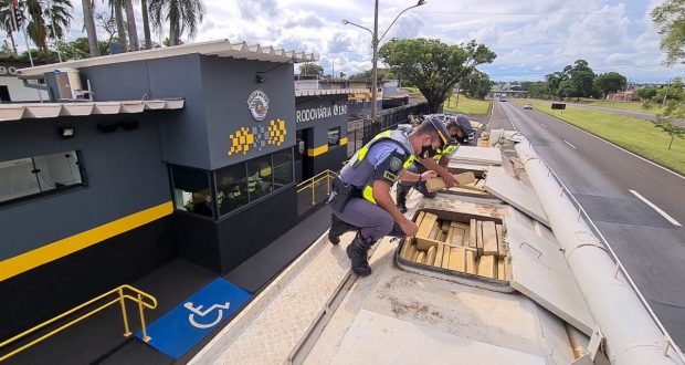 Polícia Militar Rodoviária aborda caminhão lotado de droga em Araraquara