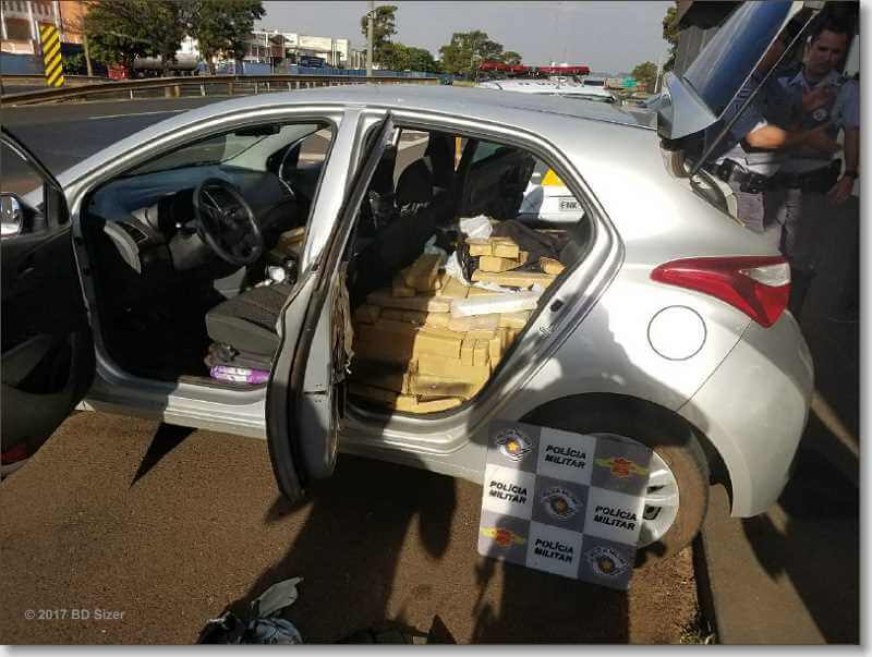 Segundo informações, os homens estavam em um veículo HB20 , produto ilícito            e no interior do mesmo foram localizados  819 tijolos de maconha.