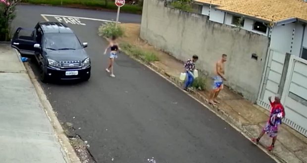 Nas imagens ela carrega dois galões de ácido que seria usado para dissolver o corpo no tambor. Mas o plano deu errado e a moradora resolveu avisar a polícia que havia um corpo esquartejado nos fundos de sua casa há cerca de dois dias.