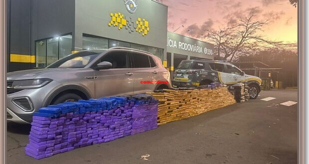 Durante a abordagem, os policiais notaram contradições nas respostas do condutor sobre sua viagem. Pressionado, ele acabou confessando o transporte de drogas. Dentro do carro, os PMs encontraram um carregamento impressionante de 956,65 quilos de maconha, além de um par de placas veiculares extras (GHY3H34), indicando possível tentativa de burlar identificações.