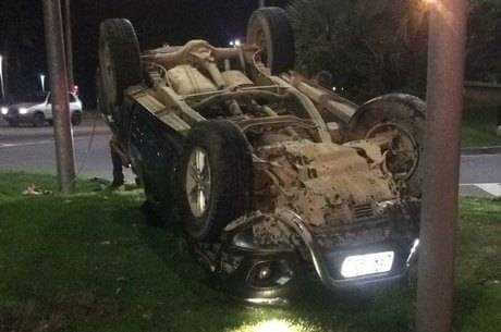 Segundo a Polícia Militar, o condutor furou o bloqueio e atropelou o militar que tabalhava no local. Ele ainda bateu em um carro que estava na via e capotou em seguida.