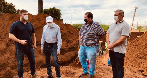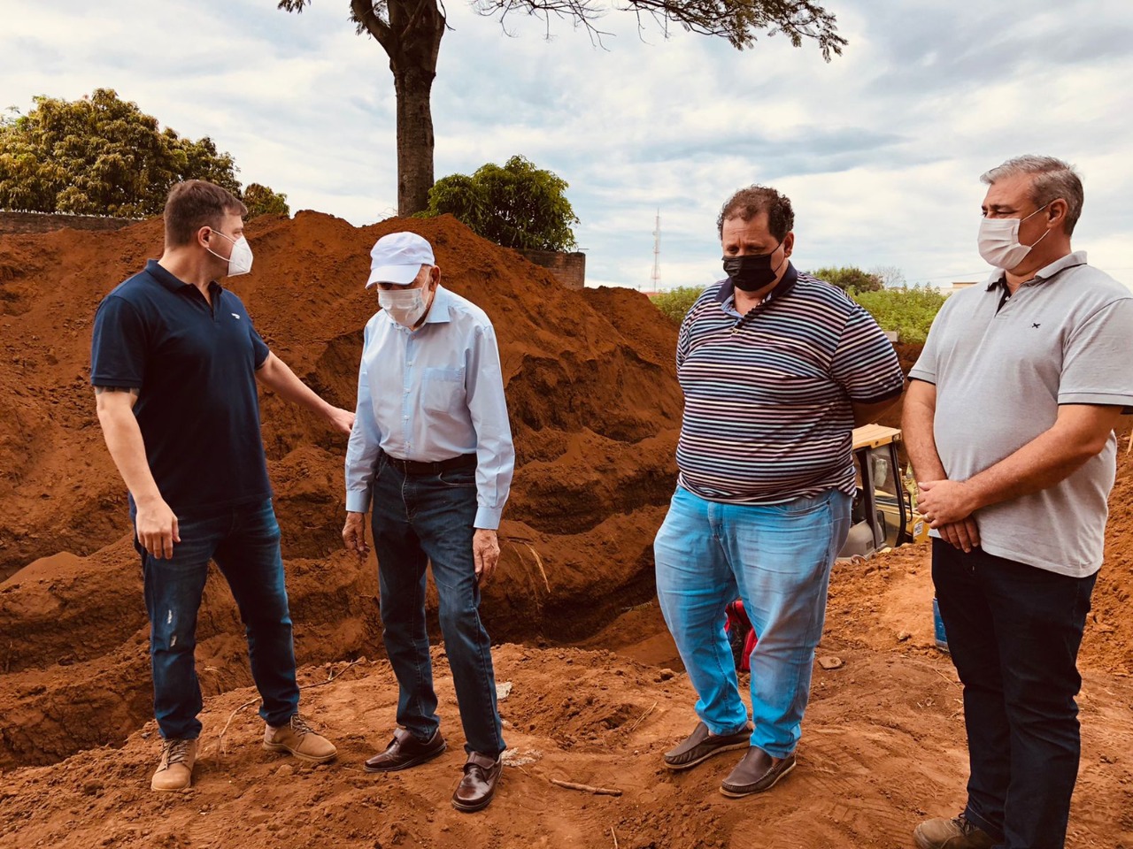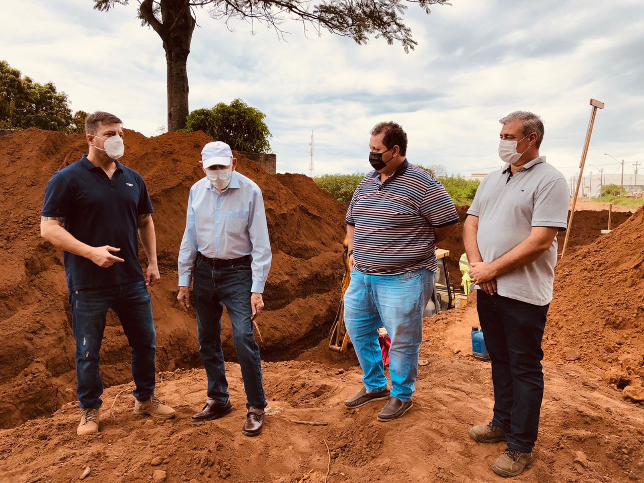 O prefeito Airton Garcia, juntamente com os secretários de Serviços Públicos, Mariel Olmo e de Transporte e Trânsito, Paulo Luciano e do chefe de gabinete da Prefeitura, José Pires (Carneirinho), acompanhou na manhã desta terça-feira (12/04), o reinício das obras no Parque São José.