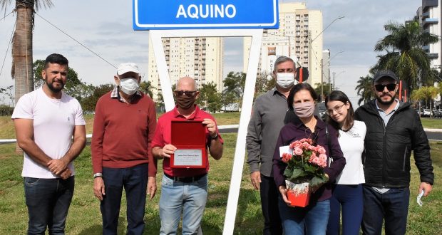 O prefeito Airton Garcia entregou uma placa aos pais da homenageada, João Paulo de Aquino e Leda Maria Cardinal de Aquino, com os seguintes dizeres: Que a lembrança do seu sorriso permaneça no coração de seus pais e irmão.