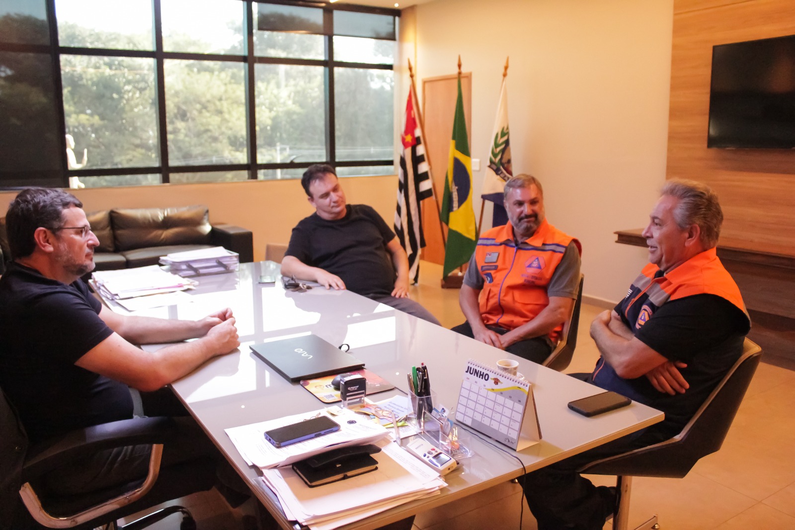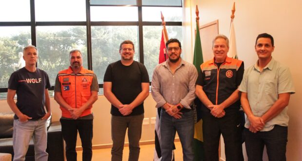 Calegari também foi recepcionado pelo Coordenador da Defesa Civil de Ibaté, Everton Perucci, pelo Secretário Municipal de Segurança Pública, Major Fumagale e pelos secretários de Governo, Fábio Gomes, de Obras, Chiquinho Ferro e de Planejamento Ambiental, Urbano e Rural, Fábio Noel.
