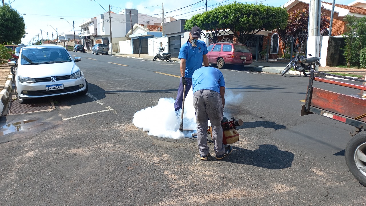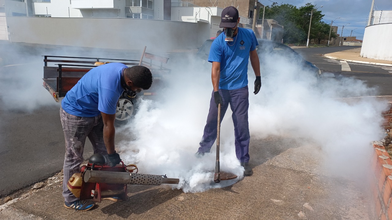Esse trabalho –indicado para ser executado de seis em seis meses – está sendo realizado por empresa contratada através de processo licitatório e contempla todos os bairros da cidade, consistindo na aplicação de inseticida em pontos de visita (Pvs) e nos bueiros.