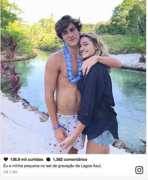Depois foi a vez dela receber uma declaração. “Eu e minha pequena no set de gravação de Lagoa Azul”, brincou na legenda de uma foto na qual aparece abraçado à estudante de moda.