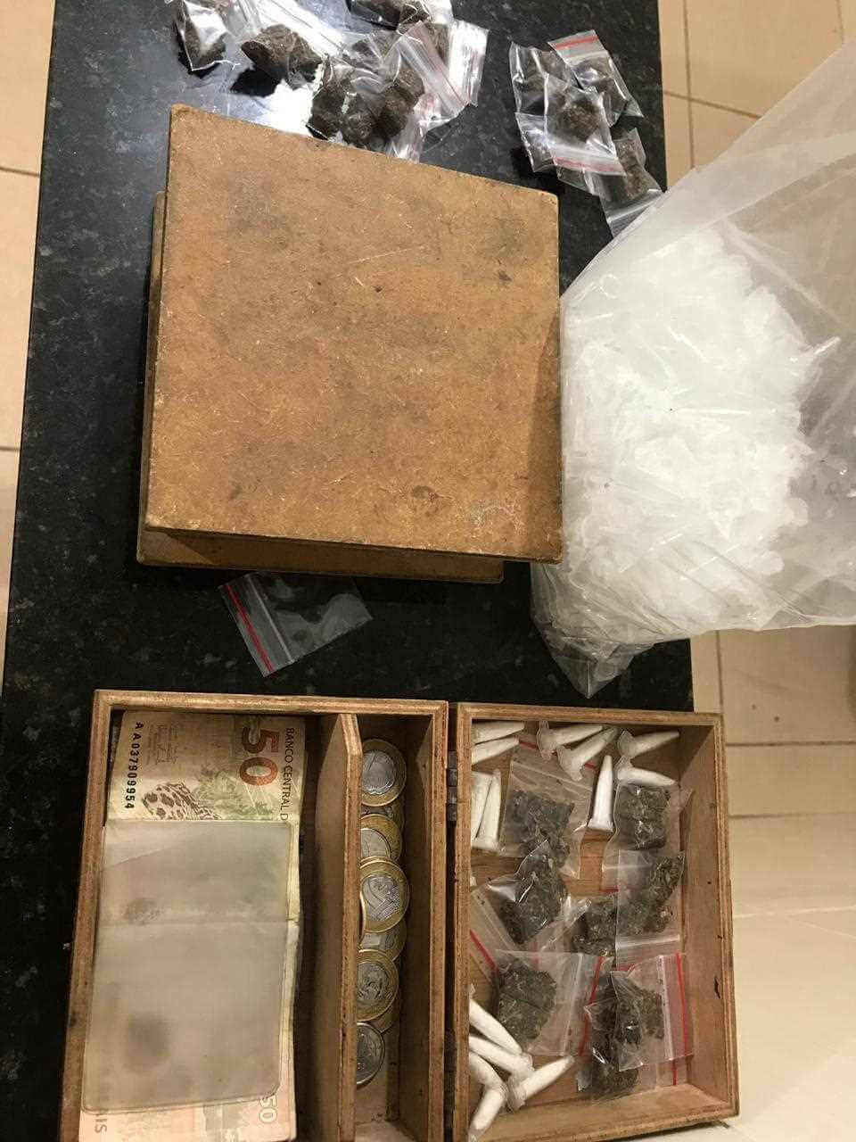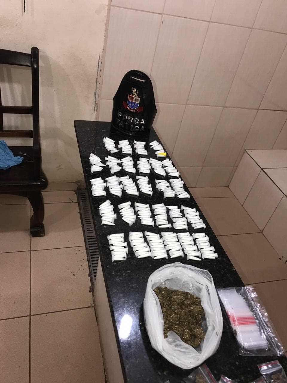 Jailson Francisco Alto, idade não informada, foi detido pelos policiais da Força Tática cabos Frigieri D. Lazarine e soldado Jonathan. De acordo com a PM, a equipe foi averiguar uma denúncia de tráfico de drogas e logrou êxito em deter o individuo. Entorpecentes, dinheiro e material para embalar foram localizados.