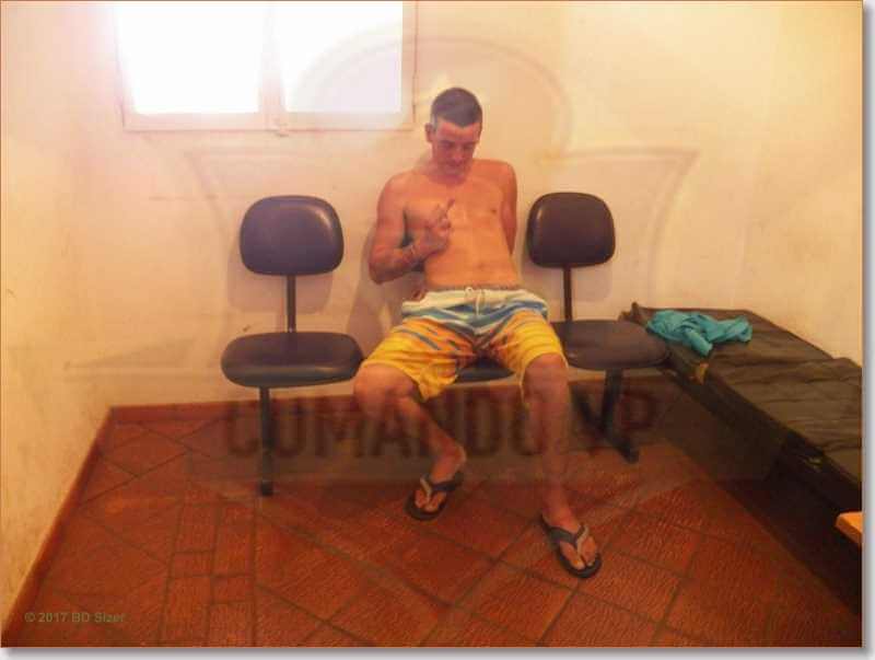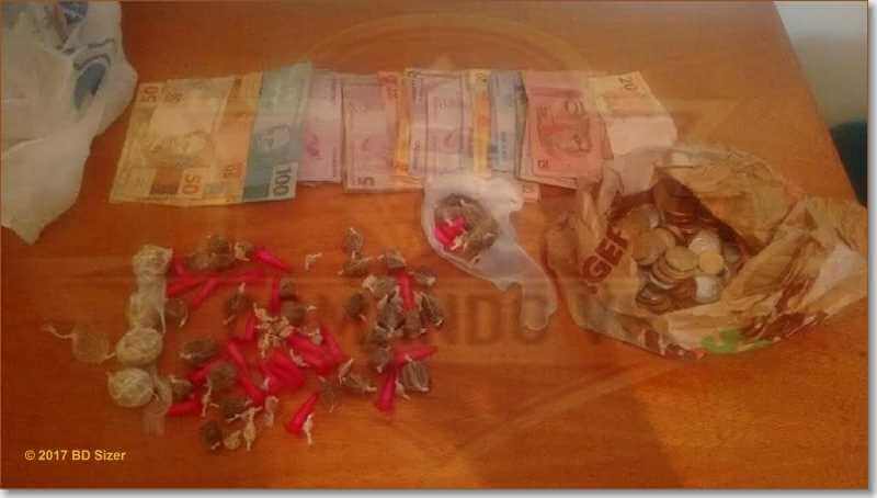 Segundo boletim da PM, uma equipe composta pelos cabos R-Dias e Francisco estava em patrulhamento com vista autores de furto a residência. Na referida rua os policiais viram Leandro sair correndo e adentrando no quintal de sua casa. Depois pulou muros das casas, mas foi detido na Avenida João Dagnone. Na fuga ele teria dispensado  um pacote ao solo. Este contendo 114 pedras de crack, 27 trouxinhas de maconha e 21 pinos de cocaína. Ainda de acordo com a PM, na caixa de correios foi localizado mais uma porção de drogas. Na sua casa foi localizada a quantia de R$ 794,60. Quando os policiais verificaram seu nome, constou que havia em  seu desfavor um mandado de prisão por tráfico de drogas. Leandro foi encaminhado à Delegacia de Investigação Sobre Entorpecente, autuado em flagrante  por tráfico de drogas e recolhido ao Centro de Triagem de São Carlos.