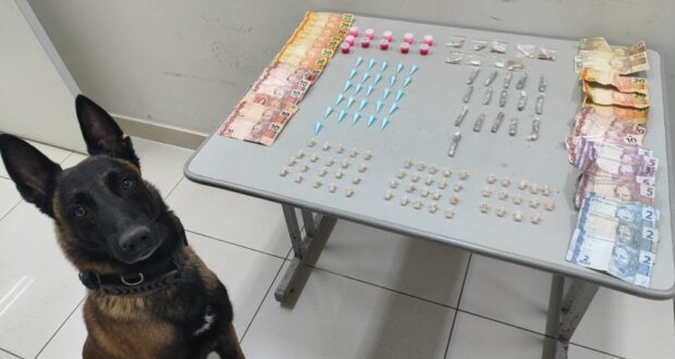 De acordo com a polícia, os agentes realizavam rondas em uma área conhecida pela intensa movimentação do tráfico de drogas, quando suspeitos fugiram ao avistar a viatura. Durante o cerco, um dos indivíduos foi capturado. Na consulta ao sistema, os policiais constataram que havia um mandado de prisão em aberto contra o rapaz. Na sequência, com o apoio do cão farejador, foram localizadas pedras de crack, porções de maconha, pinos de cocaína e cerca de R$ 400 em dinheiro. O homem foi encaminhado ao Plantão Policial, onde permaneceu à disposição da autoridade judiciária.