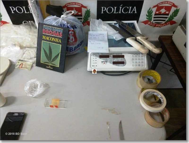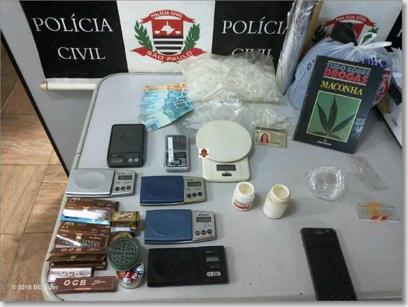 No local foram encontrados 4 tijolos e diversos cigarros de maconha, porções grandes e pinos de cocaína, 10 micros pontos de LSD (droga sintética), haxixe e ecstasy. Uma grande quantidade de pinos vazios e outros materiais usados para fracionar e embalar a droga, 7 balanças de precisão e até um livro que explica tudo sobre drogas foi apreendidos. Os investigadores prenderam o professor em flagrante por tráfico de drogas. Ele foi encaminhado à cadeia pública de Santa Ernestina.