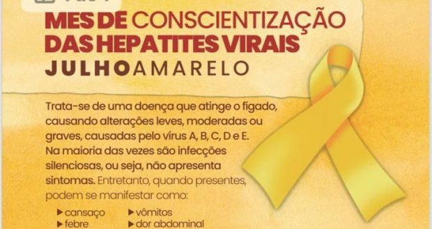A enfermeira do CAIC, Eliza Costa, explica a relevância da ação. “A hepatite é uma inflamação do fígado causada por vírus ou uso de alguns medicamentos, álcool, outras drogas ou doenças autoimunes, metabólicas e genéticas, podendo ou não apresentar sintomas. Por isso, a finalidade do “Julho Amarelo” é reforçar as campanhas de vigilância e controle das hepatites virais”, disse Eliza.