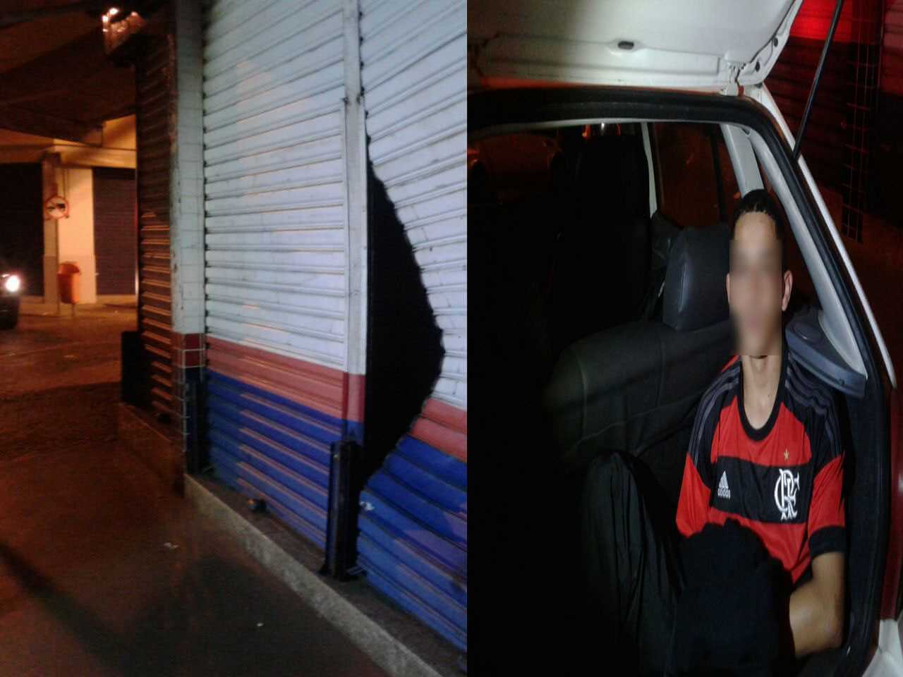 Um jovem foi detido durante a madrugada desta terça-feira, 23-01-2018, suspeito de ter arrombado a porta das Lojas Casas Bahia, situada na rua Episcopal, Centro de São Carlos-SP, onde foram furtados diversos celulares.