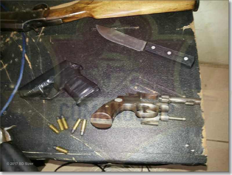 Segundo informações, a equipe do tenente Cruz, o qual estava na modalidade DEJEM, fazia patrulhamento pela região do bairro Santa Felícia, quando abordou um veículo Logus da cor prata, ocupado por cinco indivíduos. No volante estava o vulgo “Cesinha”, o qual é morador no bairro Monte Carlo, em São Carlos, os outros todos moradores em Ibaté. No carro foi localizado um simulacro de arma , uma faca e um celular. Os policiais estavam conversando com os abordados, quando o Centro de Operações da Polícia Militar (COPOM) recebeu uma denúncia que cerca de oito bandidos haviam praticado um roubo em um sítio em Ibaté. Diante das características passadas pelas vítimas, a PM resolveu então interrogar os averiguados e fez uma foto do celular, da faca e do simulacro de arma, a vítima reconheceu os objetos e ainda disse que a faca e o celular haviam sido roubados de sua casa. Então os policiais resolveram averiguar melhor os fatos e continuaram perguntando sobre o fato e eles confessaram o delito e ainda disseram onde haviam escondido os produtos roubados. Outras equipes da PM se deslocaram até a rua Dezoito do bairro Cidade Aracy, sendo localizado diversos objetos roubados e também um veículo Corsa roubado no sítio. No carro, segundo a PM, tinham várias armas usadas no roubo. Um indivíduo que estava cuidando dos objetos e do carro roubado acabou detido. Todos os objetos e os suspeitos foram encaminhados ao Plantão Policial de São Carlos. Até o fechamento desta matéria a situação dos suspeito ainda não havia sido definida.