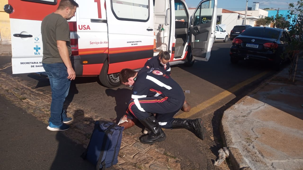 A Unidade de Suporte Avançado (USA) do SAMU socorreu um motociclista nesta tarde de quarta-feira, 27 de julho de 2022, após o mesmo sofrer uma queda de moto na Rua Machado de Assis, região do bairro Vila Monteiro, São Carlos-SP.