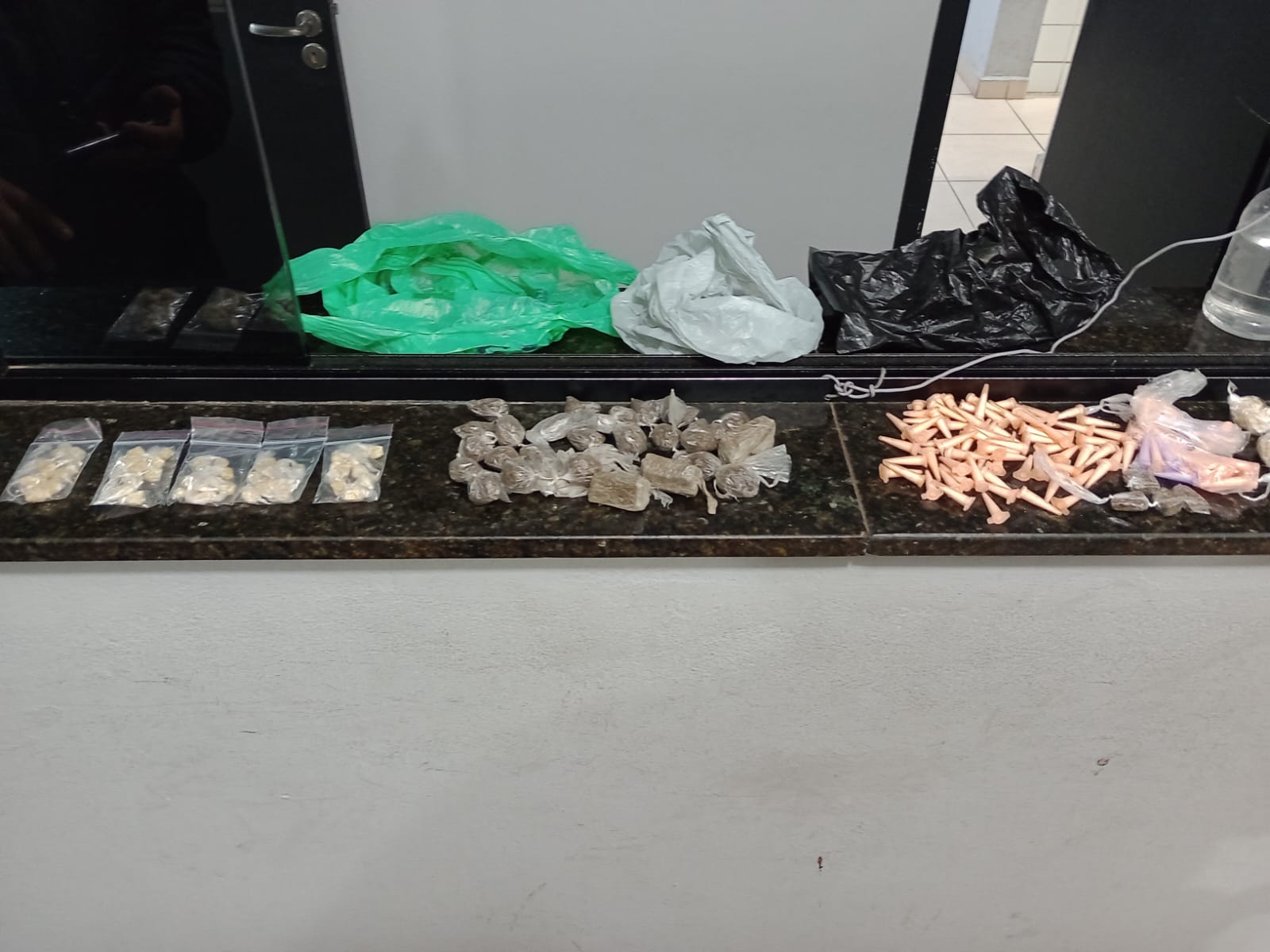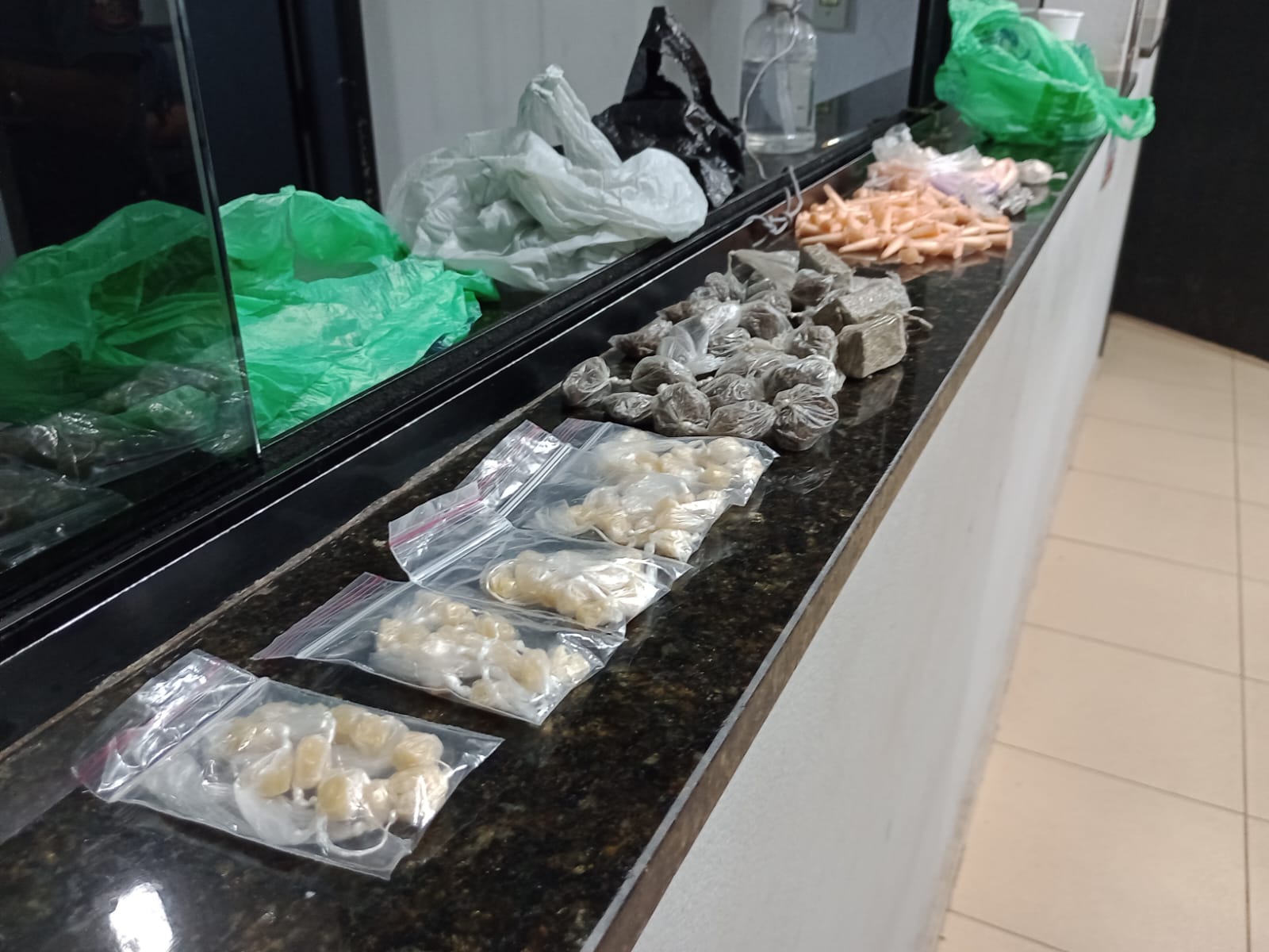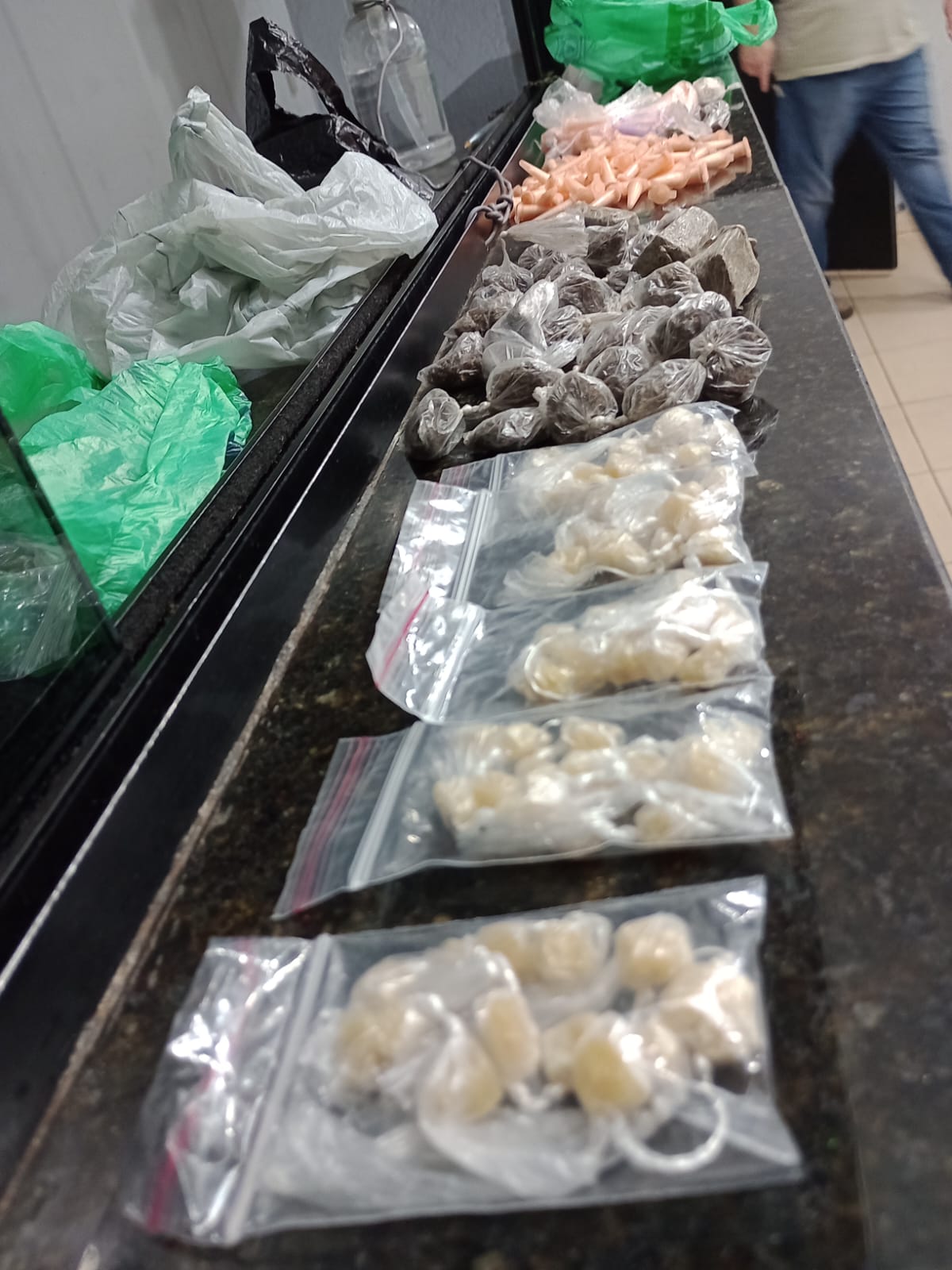 De acordo com informações, os cabos Alexsandro e Simone estavam em patrulhamento pela região da Vila São José, quando foram informados que na Rua Colômbia estava ocorrendo tráfico de drogas. Os policiais passaram a patrulhar e avistaram os indivíduos saindo de uma casa e adentrando em um veículo Gol. Os policiais pediram apoio para outras viaturas e abordaram os suspeitos na Rua Peru. Dentro do carro foram localizadas drogas. Questionados, nada informaram do ilícito. A ocorrência foi encaminhada para a Central de Polícia Judiciária, onde foi elaborado o flagrante de tráfico de drogas e E. R.S, 23 anos, Vulgo” RD”, o qual já tem duas passagens por receptação, F.F.S, 37, com passagem por roubo e tráfico, M.A.R.L.S.R.S, 23 , passagem por furto de veículo e J.V.S.R, de 22, foram recolhidos ao Centro de Triagem de São Carlos.