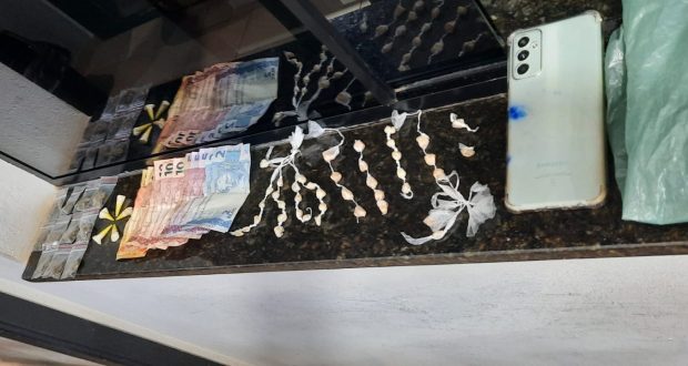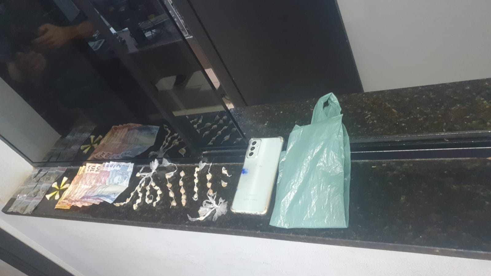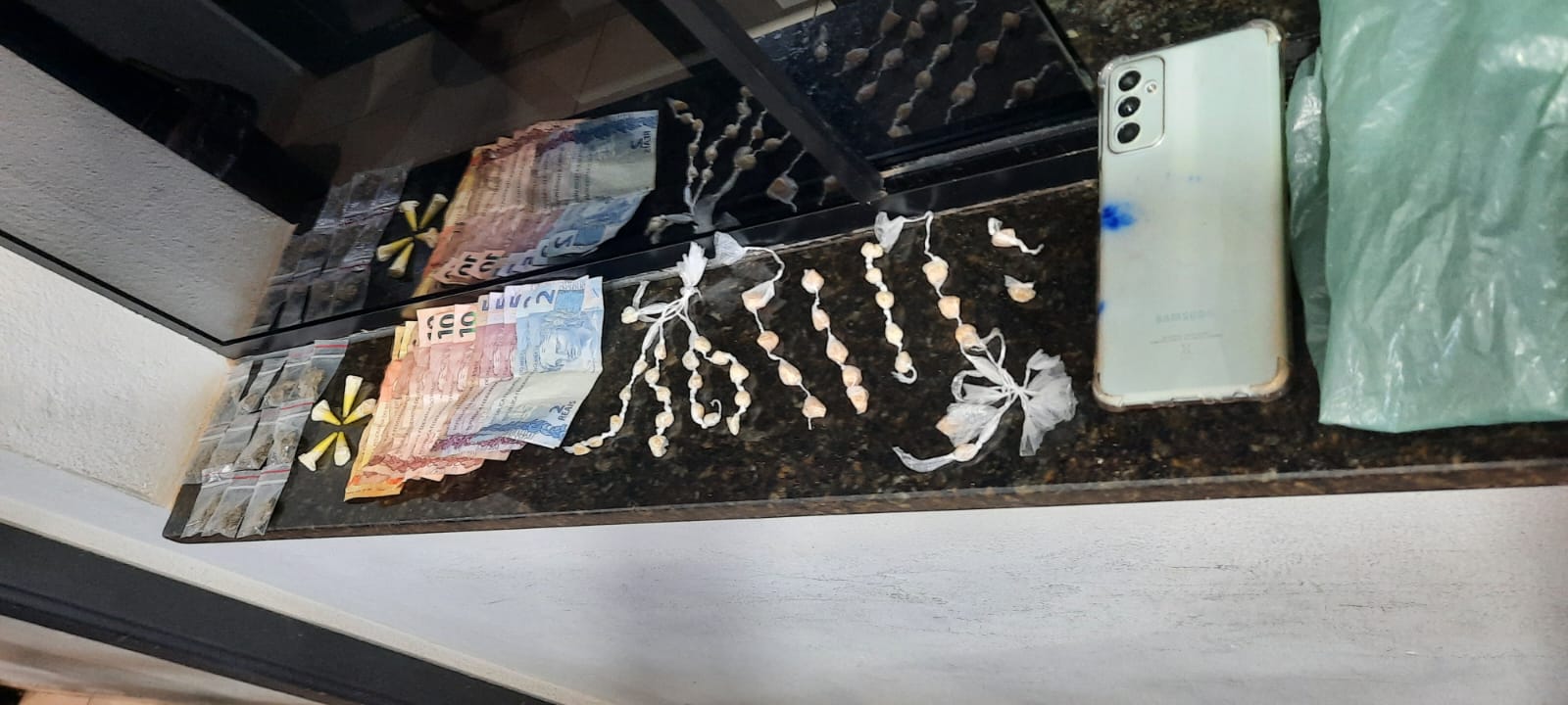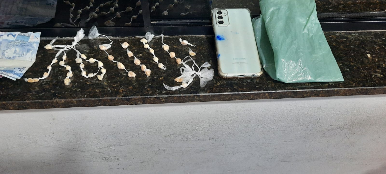De acordo com informações, a denúncia chegou através do 190. A pessoa informou, que um jovem com uma camisa azul da Seleção Brasileira de Futebol, estava no local, provavelmente vendendo drogas. Os policiais foram para o local e abordaram o suspeito, K. T. C, de 19 anos. Os policiais apreenderam 11 porções de maconha, 5 pinos cocaína, 41 pedras e R$ 109,00. O indivíduo foi encaminhado para a Central de Polícia Judiciária, onde ficou à disposição da justiça.