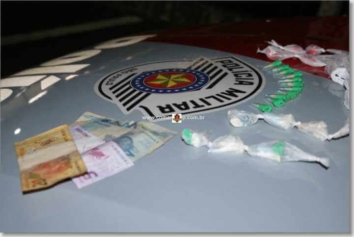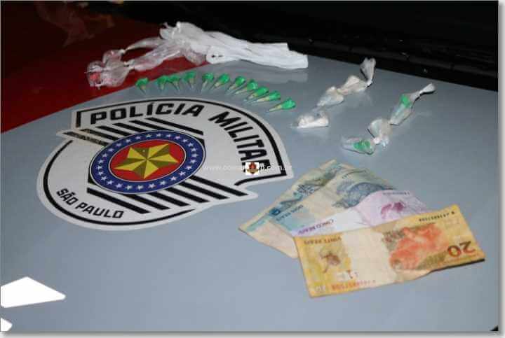 Segundo informações, o cabo Cesar e soldado Henrique estavam em patrulhamento preventivo quando se depararam com A. R. C, de 29 anos. Ainda de acordo com a PM, com o mesmo foi localizado um pino de crack e na terra onde o mesmo estava mexendo foram localizados maconha, pinos de crack e cocaína. O averiguado que já tem passagem por furto foi encaminhado ao Plantão Policial onde está sendo apresentada a ocorrência.