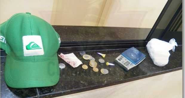 Segundo o sargento Adans, sua equipe estava em patrulhamento quando avistou dois indivíduos. Eles saíram correndo, mas o menor foi detido. Com ele foram localizados pinos de drogas e a quantia de R$ 16,00. Ao seu lado foi localizado um saco contendo um pó branco semelhante cocaína e uma balança de precisão. O menor foi encaminhado ao Plantão Policial, ficando à disposição da autoridade policial.