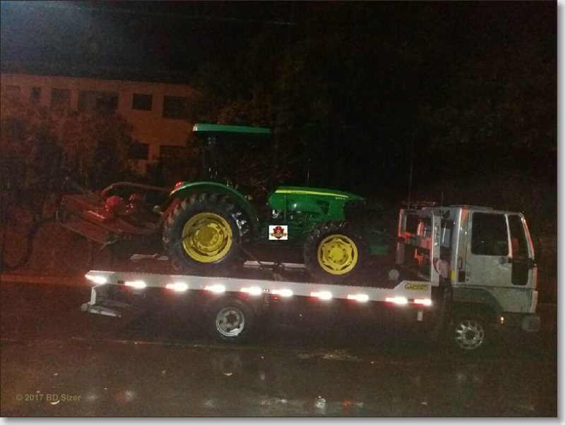 segundo informações, a vítima foi até a companhia da Polícia Militar em São Carlos e solicitou apoio, pois um trator de sua propriedade havia sido furtado por volta das 20:00 e que o mesmo era monitorado.