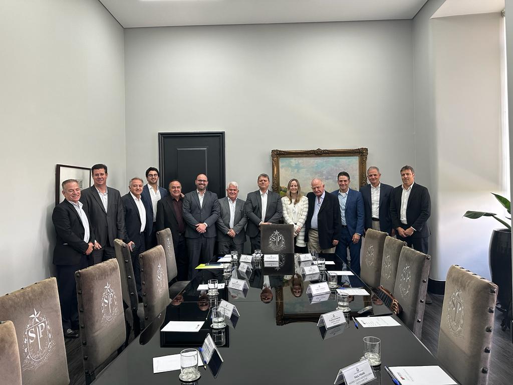 O secretário municipal de Governo, Netto Donato e o presidente da Câmara Municipal, Marquinho Amaral, participaram na tarde desta segunda-feira (18/09), no Palácio dos Bandeirantes, juntamente com a direção do Condomínio Industrial e Logístico da Construtora e Incorporadora Laguna, representada pelo empresário Faissal Assad Raad, presidente do Conselho e do CEO do grupo, Gabriel Raad, de audiência com o governador Tarcísio de Freitas