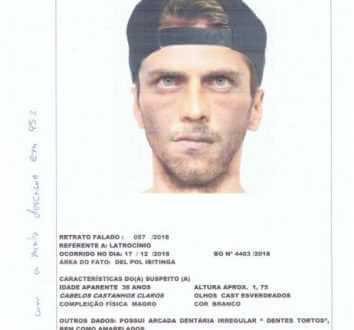 Com base nas características passadas por testemunhas, a Perícia Técnica traçou o perfil e elaborou o retrato falado do autor do crime.
