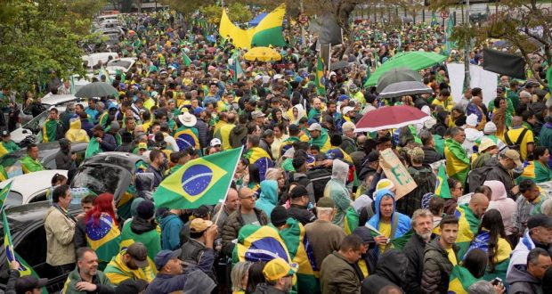 Na capital fluminense, os manifestantes se reúnem em frente ao Palácio Duque de Caxias — assista ao vídeo abaixo. Mesmo com tempo nublado e chuvoso, uma multidão está no local com cartazes contra a eleição de Lula.
