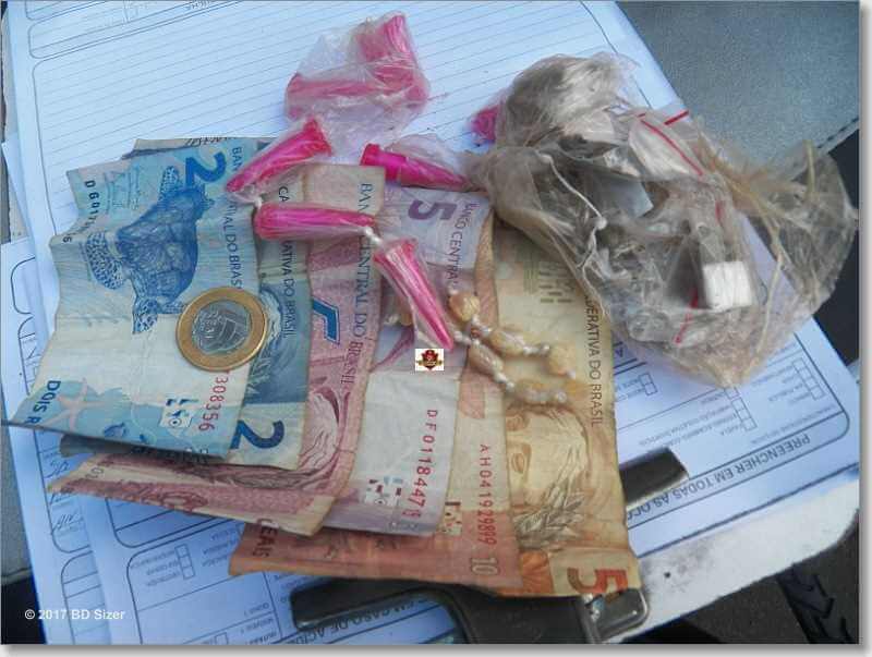 Segundo informações, o cabo Oliveira, soldado Campos, supervisor ROCAM, sargento Jenuy e cabo Perez recebem denúncia anônima  de tráfico de drogas e foram para o referido local onde detiveram o adolescente. Outros dois rapazes também foram abordados. Drogas foram localizadas nas proximidades e o adolescente assumiu a propriedade. Ele foi encaminhado ao Plantão Policial, ficando à disposição da justiça.