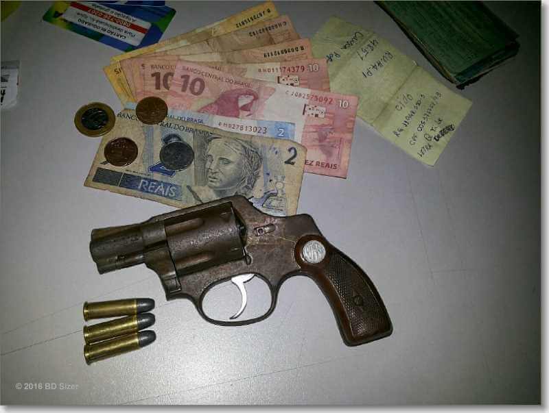 Segundo o sargento Jenuy, a arma calibre 38, cano curto e numeração raspada foi localizada em poder do menor, porém, a PM acredita que seja do maior de 48 anos. A dupla foi encaminhada à Delegacia de Investigação Gerais (DIG), o menor foi encaminhado ao NAI e o maior liberado.