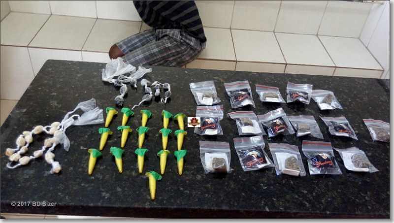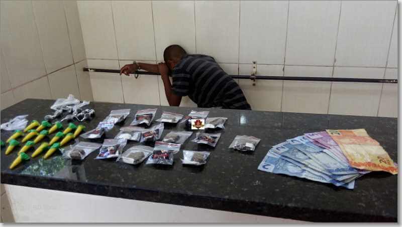 Em menos de uma semana um jovem suspeito de vender drogas já foi conduzido duas vezes ao Plantão Policial de São Carlos-SP. No final desta manhã de sexta-feira, 3 de novembro de 2017, policiais da ROCAM, Cristiano e Tacon detiveram na rua Cantor João Paulo, bairro Cidade Aracy, o indivíduo identificado como Matheus.H.S.S, de 18 anos. Segundo a PM, com o mesmo foram localizadas 16 trouxinhas de maconha, 17 porções de crack, 12 de haxixe, 16 de cocaína e R$ 46,00. O jovem foi encaminhado ao Plantão Policial, mas até o fechamento desta matéria sua situação não havia sido definida.