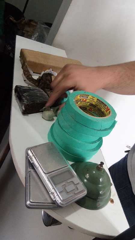 Uma espingarda municiada e um celular roubado também foram apreendidos. As drogas foram encaminhadas à Delegacia de Investigações Sobre Entorpecentes (DISE) e apreendidas. A espingarda e o celular foram apreendidos no 1º D.P policial. Ninguém foi preso.