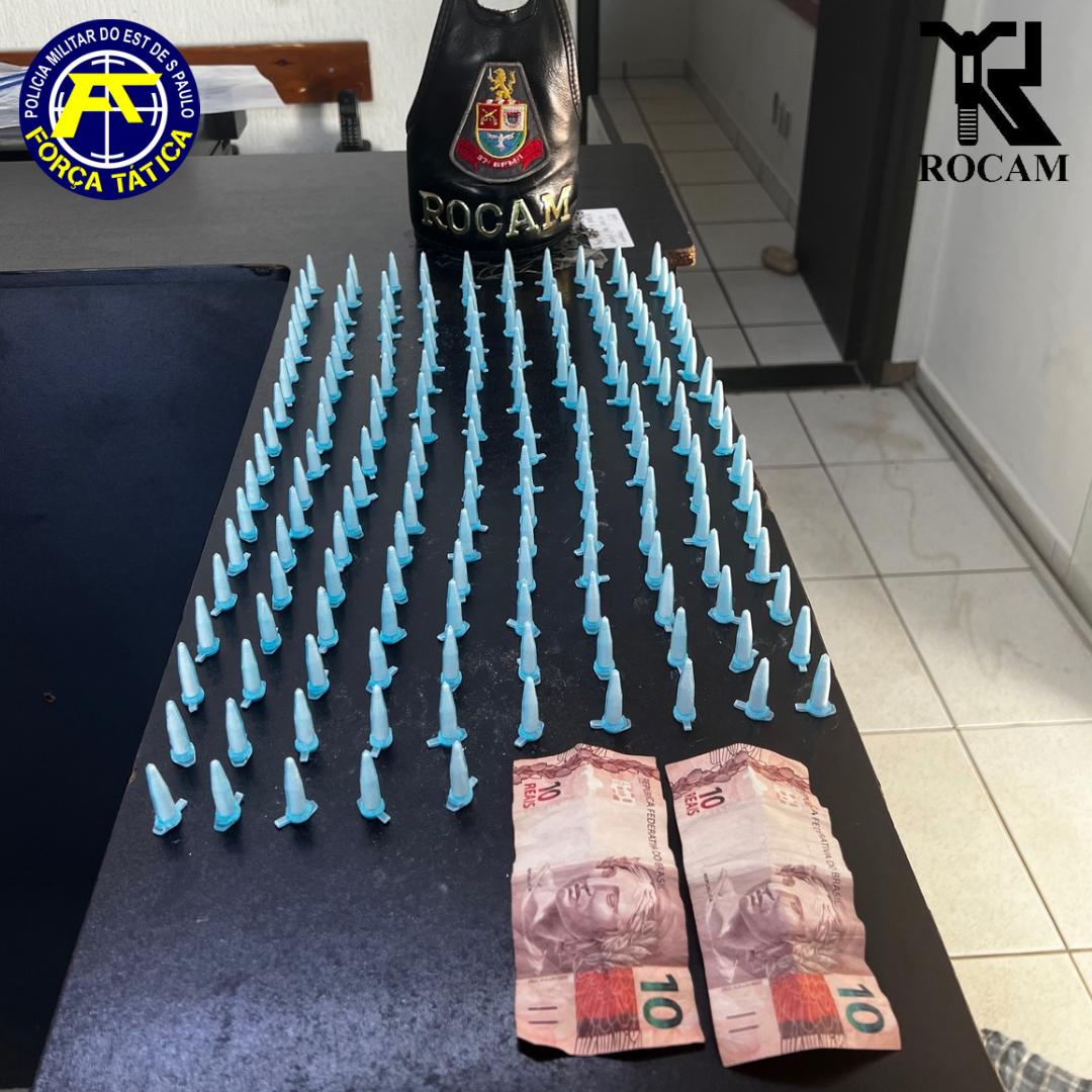 Um sujeito de 32 anos foi preso por tráfico de droga nesta tarde de terça-feira, 14 de janeiro de 2025, na Rua Santa Maria, Rio Claro/SP.