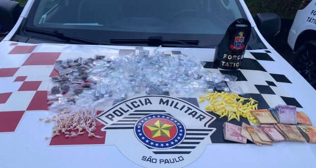 De acordo com informações, os policiais receberam denúncia que um casal morador em uma quitinete estava vendendo drogas. A.O.L.L, 37 anos e a esposa, G.R.S, 25 anos, foram detidos e no local foram apreendidos 140 porções de maconha, 74 pinos de cocaína, 5 porções de haxixe, 127 pedras de crack e R$ 1.122,50. O casal foi encaminhado para a Central de Polícia Judiciária, onde foi autuado em flagrante por tráfico de droga e recolhido ao Centro de Triagem. Ainda de acordo com a PM, ambos com passagens policiais.