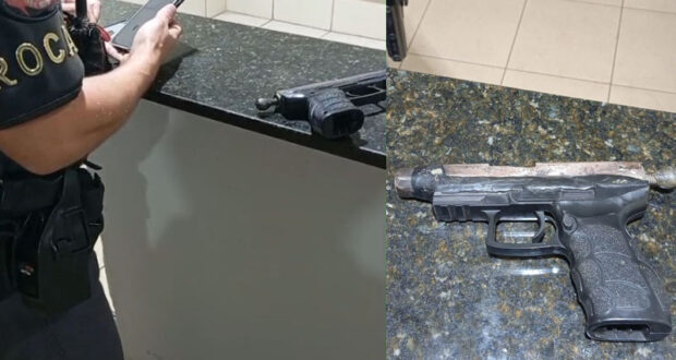 Um menor de idade foi detido por policiais da ROCAM na noite de segunda-feira, 02-06-2025, em poder de uma arma em Ibaté-SP. A detenção ocorreu no cruzamento da Rua Dourado, com a Rua Benedito Barreto, bairro Jd. Cruzado.