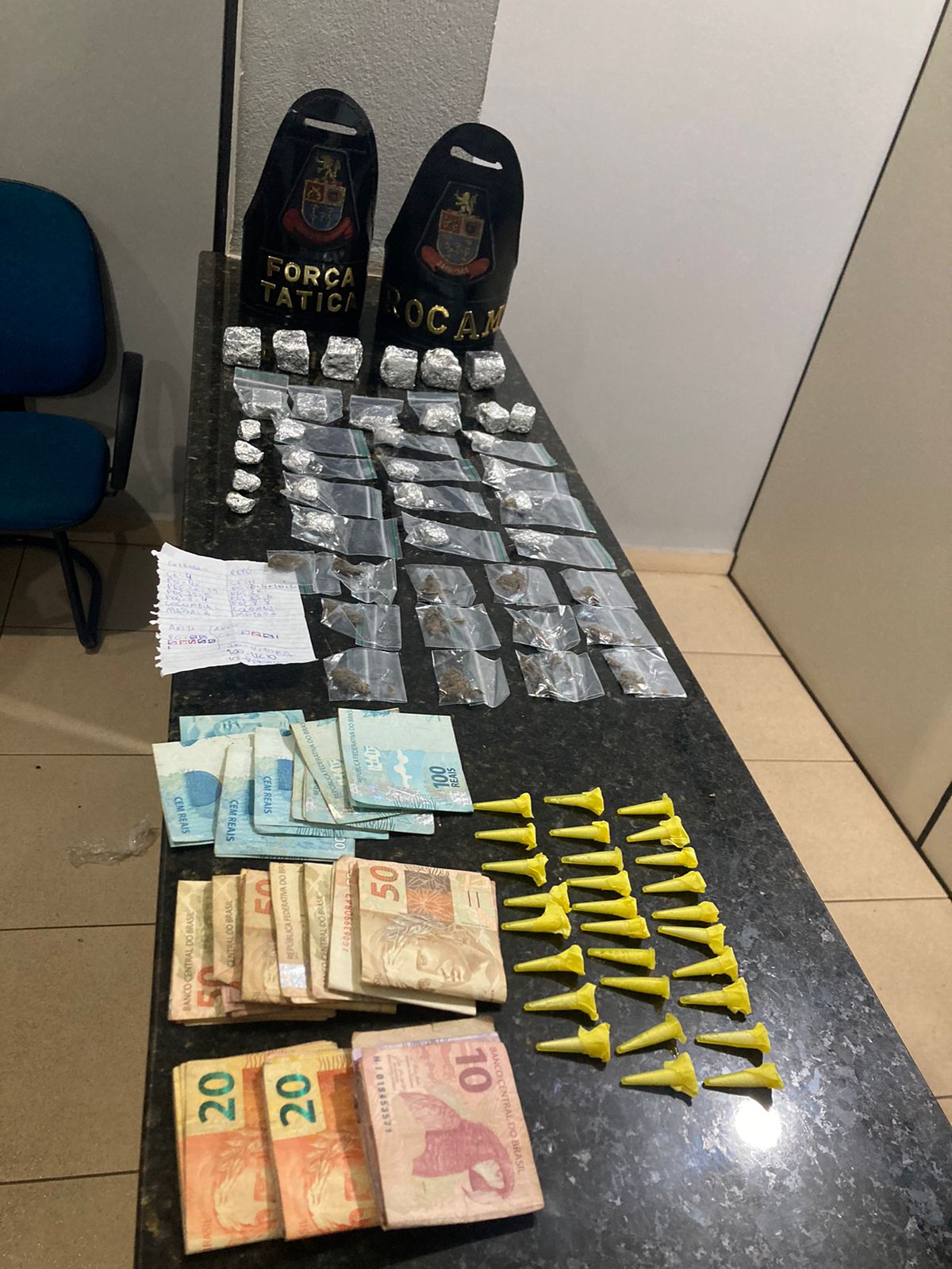 Segundo informações,  eram por volta das 23h30, os cabos Oliveira,  Soares e o soldado Amaral estavam em operação saturação pelos prédios do CDHU,  na passagem do condomínio 6 para o condomínio 2 depararam com um indivíduo  em atitude suspeita.  Este ao ver as motos, saiu correndo  com uma bolsa em suas mão, mas acabou abordado.   No interior da bolsa foram localizados   drogas diversas e dinheiro trocado. O abordado foi encaminhado para a Central de Polícia Judiciária,  autuado em flagrante pelo delegado, Dr. Gilberto de Aquino e permaneceu à disposição da justiça.
